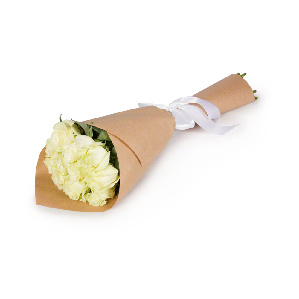 Букет из 11 белых роз в крафте
