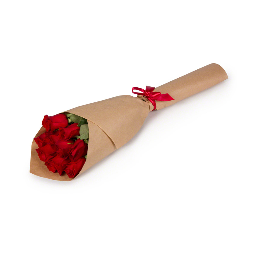 Элегантный букет из красных роз в экологичной крафтовой упаковке — это современное проявление искренних чувств.