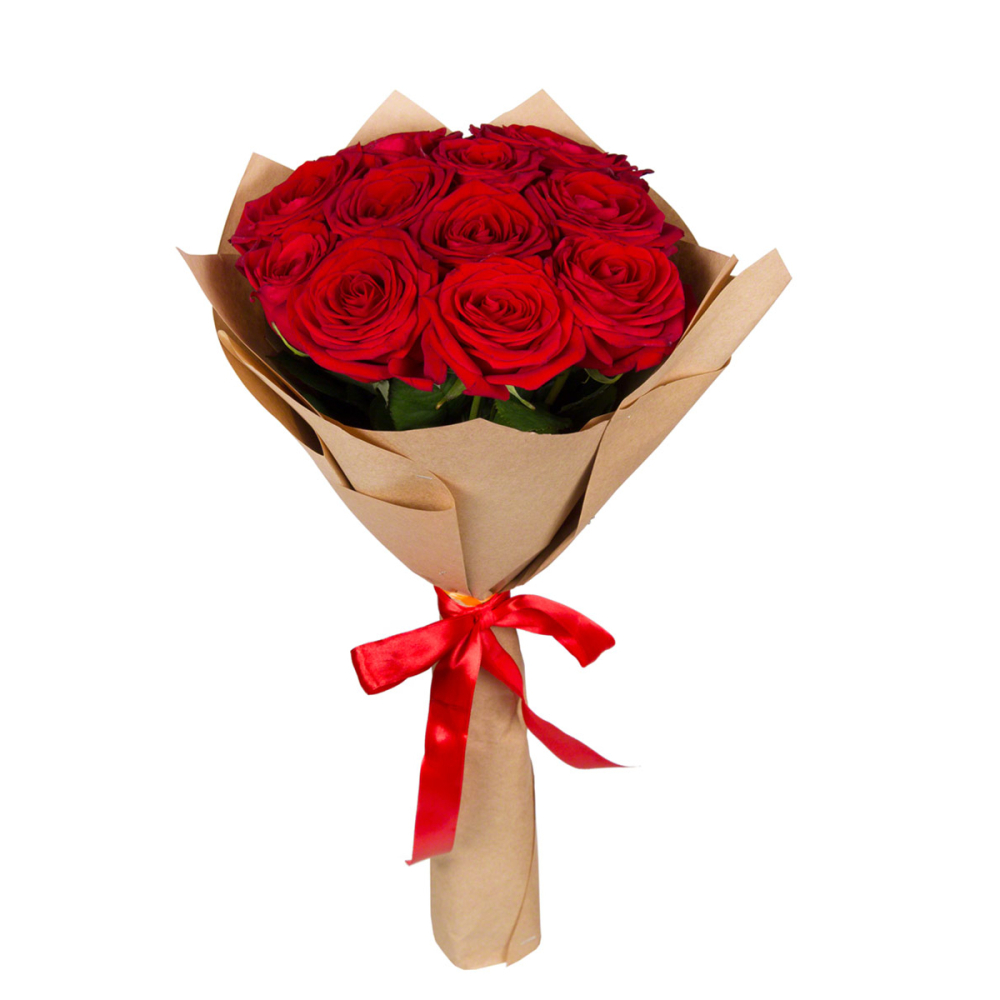 Букет из 11 красных роз в крафт-бумаге